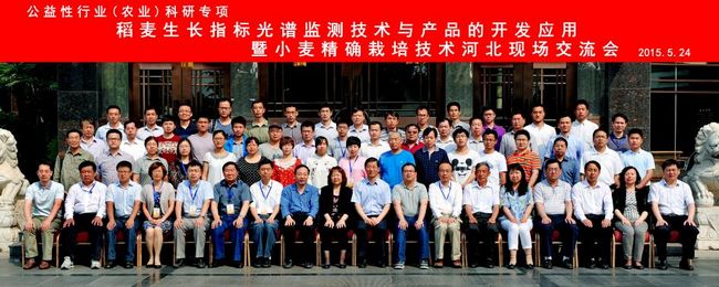 5月23日至24日,公益性行业(农业)科研专项“稻麦生长指标光谱监测技术与产品的开发应用”暨“小麦精确栽培技术”现场交流会在河北省石家庄市鹿泉区举行,会议由南京农业大学国家信息农业工程技术中心(以下简称“中心”)主办,北京农业信息技术研究中心、河北省农业技术推广总站、河北农业大学农学院共同承办。中心主任曹卫星教授、国家农业信息化工程技术中心主任赵春江研究员出席会议,河北省农业厅总农艺师段玲玲研究员、我校副校长丁艳锋教授、农业部科技教育司产业技术处副主任谢驾阳分别致辞。会议由项目首席专家、我校农学院院长朱艳教授主持。