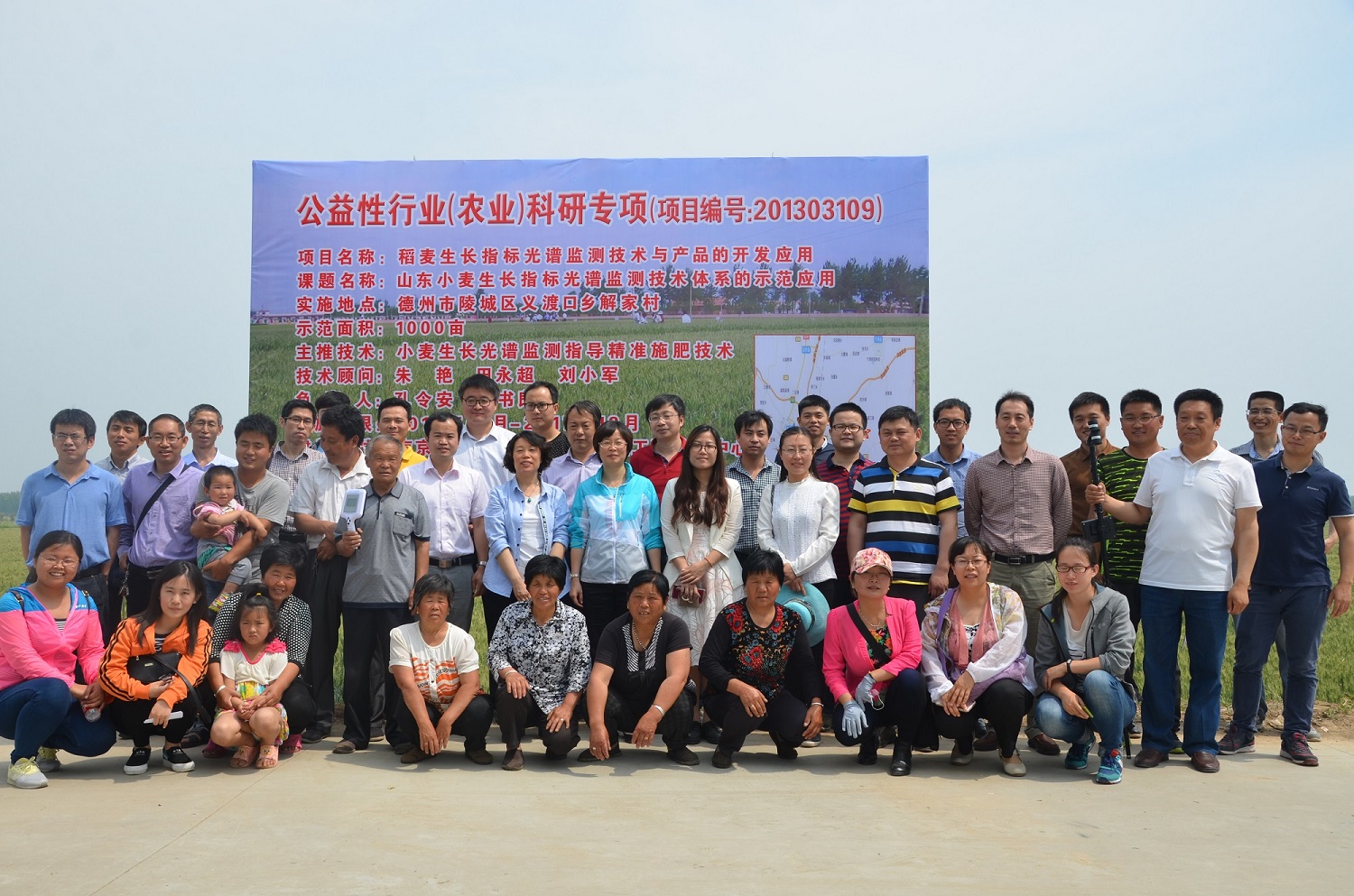 会议期间,与会专家和领导先后考察了位于德州市陵城区的小麦生长指标监测诊断技术核心示范区和五万亩高产示范方,种田大户代成江还向参会人员现场演示了主动式作物生长监测诊断仪的使用。在示范区现场,专家们了解到,小麦生长指标监测诊断技术是集卫星、无人机和地面遥感一体化的监测技术体系,该技术体系具有明显的节氮、省种等优点,具有良好的社会、生态和经济效益。