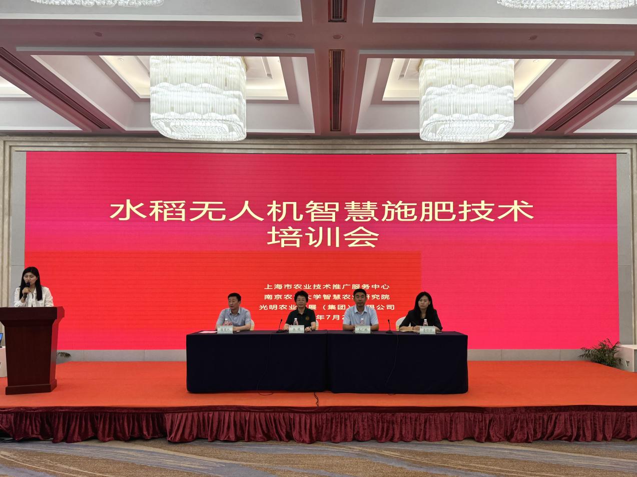 本次活动由南京农业大学智慧农业研究院联合上海市农业技术推广服务中心、光明农业发展(集团)有限公司等单位共同主办。全国政协常委、教科卫体委员会副主任、民盟中央副主席、南京农业大学智慧农业研究院名誉院长曹卫星,上海市农业农村委员会党组成员、副主任陆峥嵘,我校副校长朱艳,上海市农业技术推广服务中心主任王广鹏,光明农发集团党委书记、董事长陈斐然,以及上海全市各涉农区农技中心、光明农发集团、上实农业公司粮油技术骨干和部分农业企业、合作社负责人,我校智慧农业学院(人工智能学院)相关负责同志等90余位代表,共同探讨水稻绿色智慧施肥新路径。